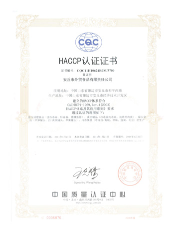 公司產(chǎn)品通過(guò)HACCP,BRC,IFS認(rèn)證HACCP認(rèn)證BRC認(rèn)證IFS認(rèn)證