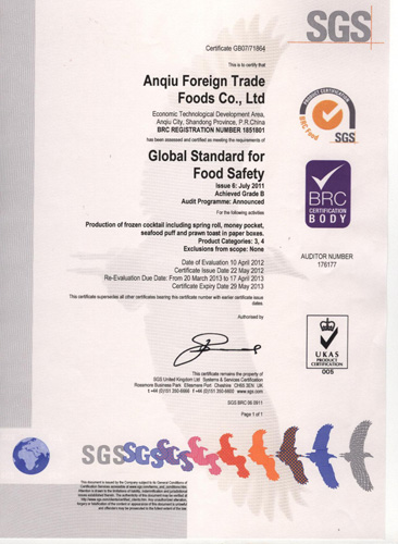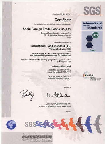公司產品通過HACCP,BRC,IFS認證